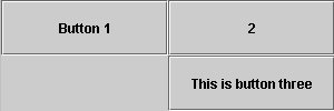 JPanel content = new JPanel(new GridLayout(2,2)); content.add(new JButton("Button 1")); content.add(new JButton("2")); content.add(new JLabel("")); // for empty cell content.add(new JButton("This is button three"));