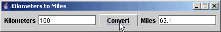 You can see the complete FlowLayout version of this program at Example - Kilometers to Miles - Complete. Below is a comparison of the layout section of the FlowLayout constructor with the equivalent null layout constructor.